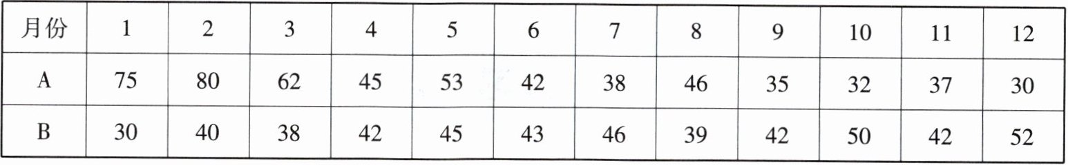 (3) A 品牌鞋子销量总体上呈下降趋势,B 品牌鞋子销量总体上变化不大。(答案不唯一,言之有理即可)