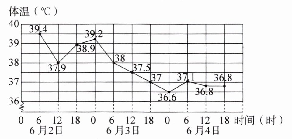 (3)从6月3日6时到18时,小明的体温下降了()℃。