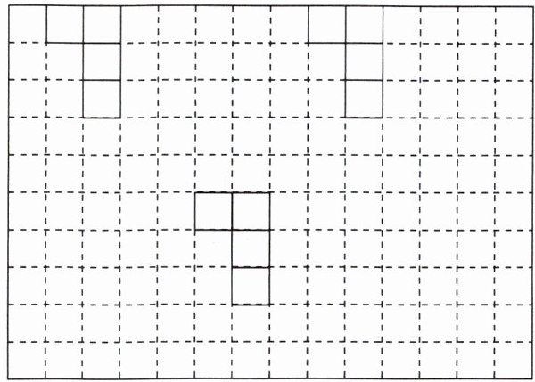 9. 在由4个相同的小正方形组成的“7”字形中,请你添画一个小正方形,使它成为轴对称图形,并画出对称轴。(画出三种不同的设计图案)