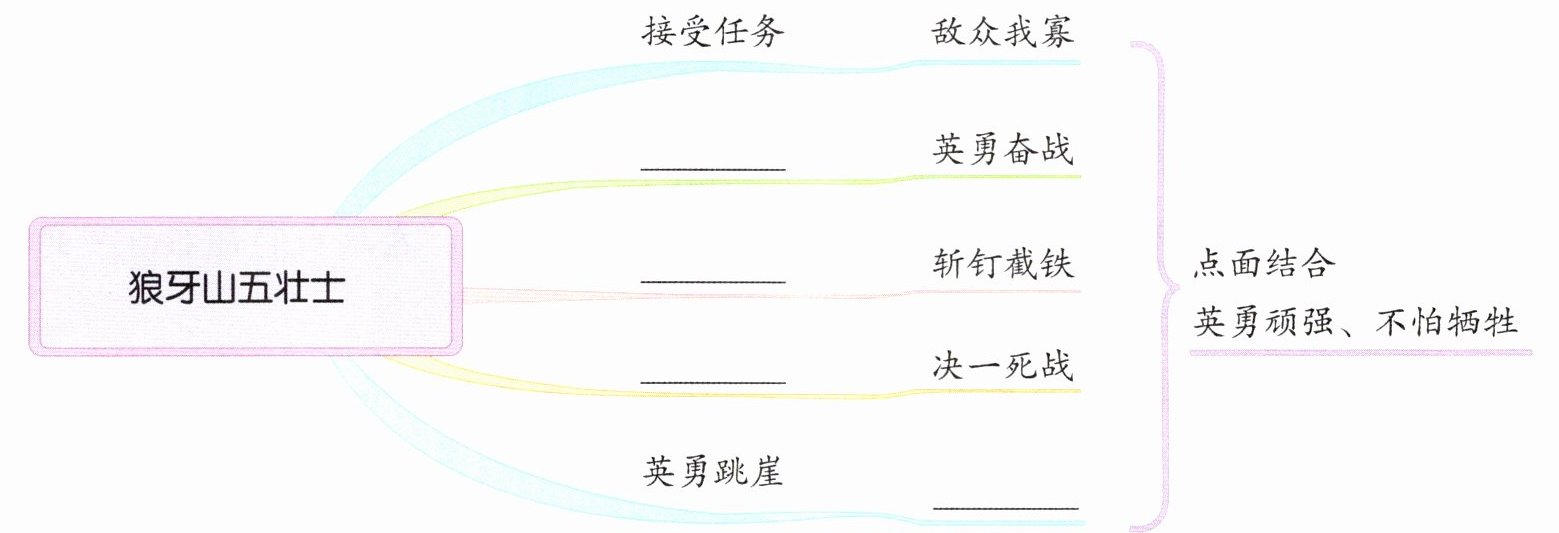 (注:因第二题答案需填入图片对应位置,此处按要求仅将第一题答案填入,第二题答案“痛击敌人 引上绝路 顶峰歼敌 壮烈豪迈”请根据实际图片空栏位置对应填入)