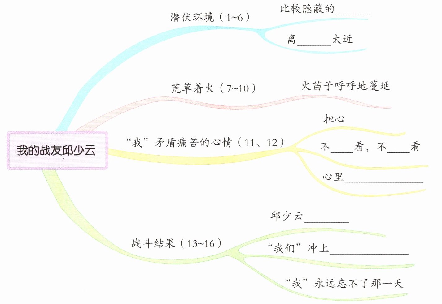 2. 山沟 敌人 敢 忍 像刀绞一般 牺牲 敌人的阵地