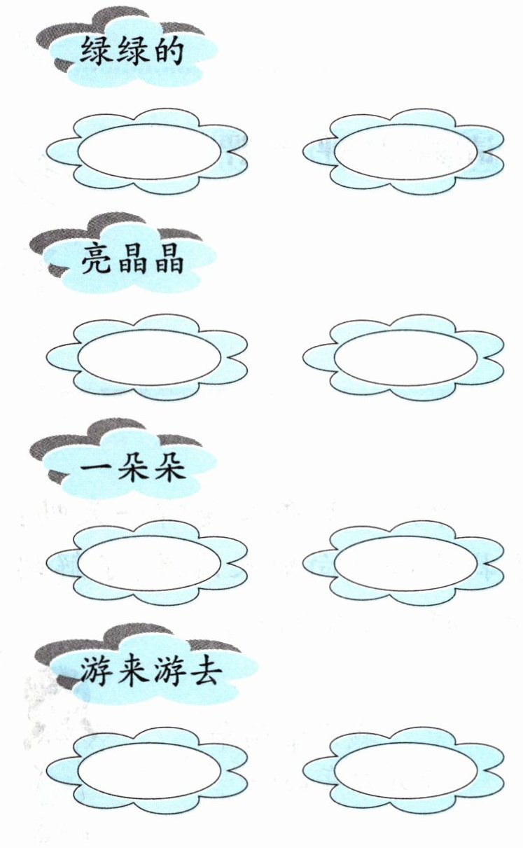 【示例】红红的 白白的 胖乎乎 香喷喷 一只只 一条条 飞来飞去 跑来跑去