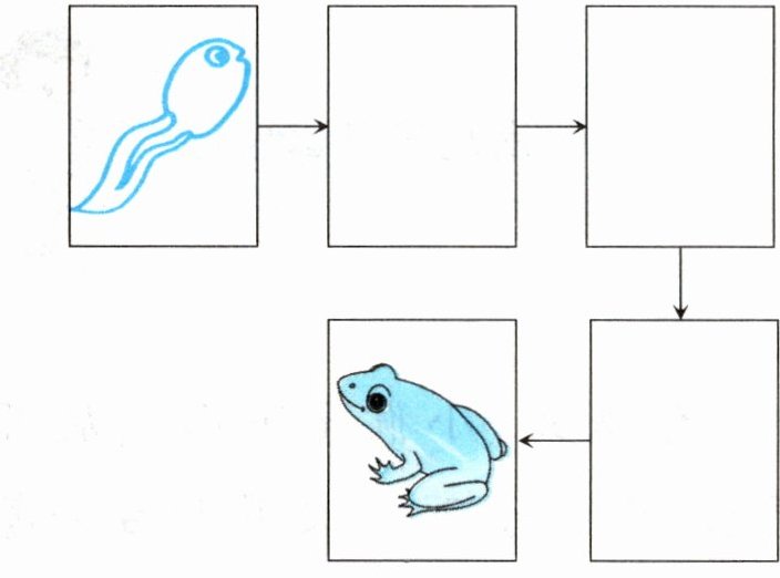 二、蝌蚪是怎样变成青蛙的?请先画一画,再用自己的话说一说。