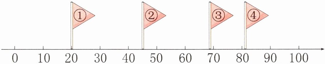 (2)③号小旗最接近的整十数是( ),④号小旗最接近的整十数是( )。