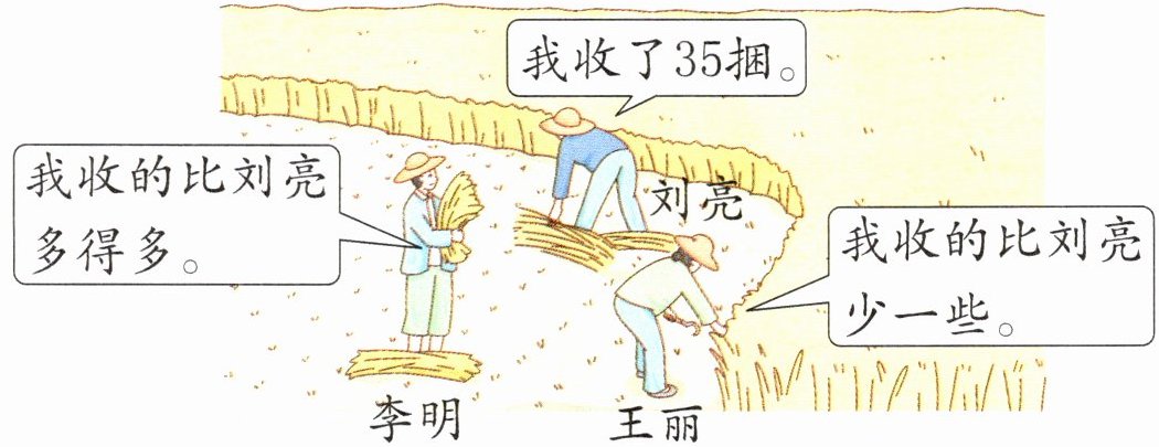 4. 李明收了多少捆?(画“○”)王丽收了多少捆?(画“√”)