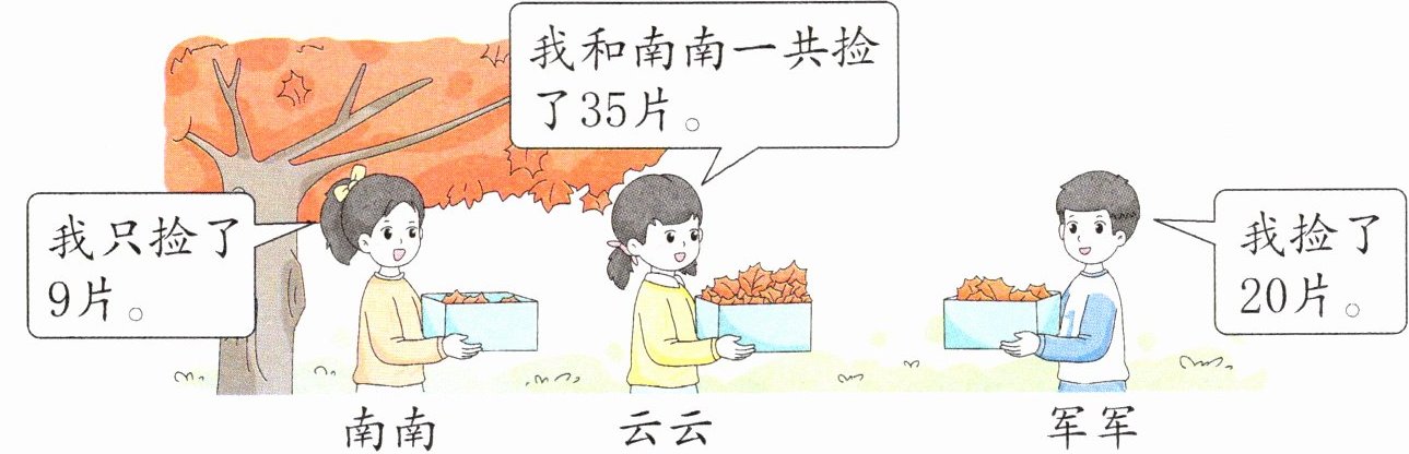 (2)南南再捡多少片就跟军军捡的同样多了?