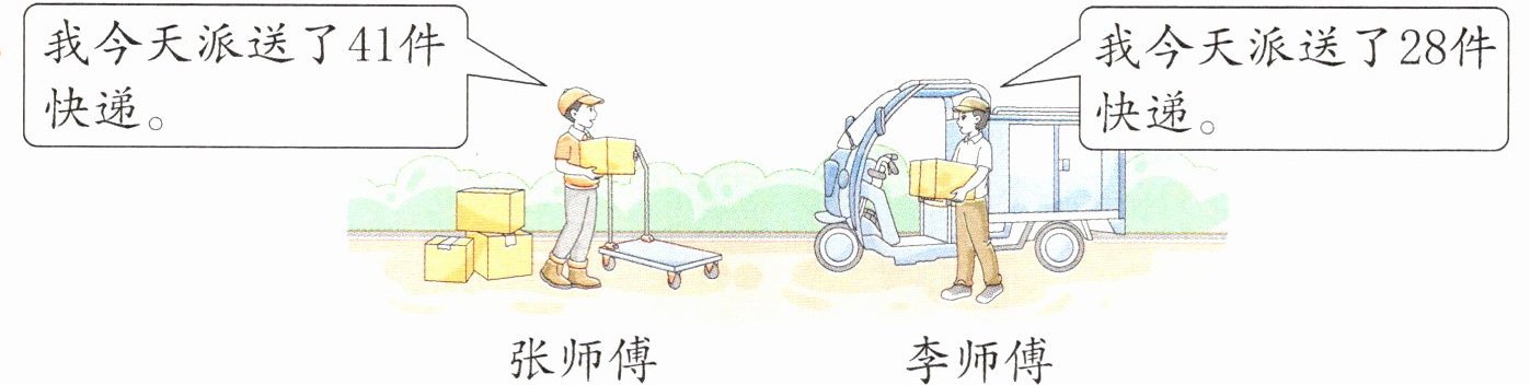 张师傅比李师傅多派送了多少件快递?李师傅比张师傅少派送了多少件快递?