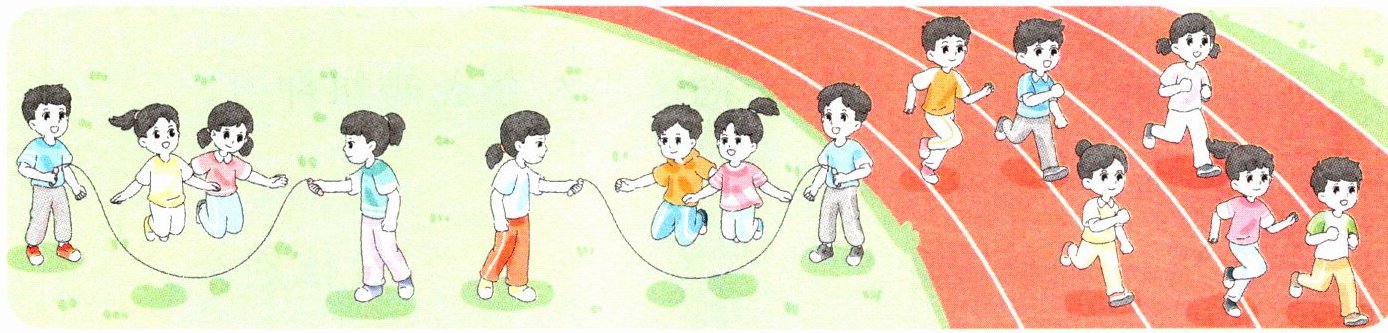 (2)跑步的同学比跳绳的同学多几人?$6 - 5 = 1$(人) (答案不唯一)