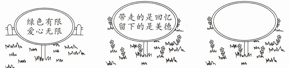 三、欣赏下面草坪上的标语,并请你仿写一句爱护花草的标语。