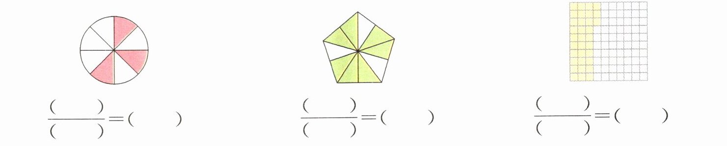 (1)分别用分数和小数表示下面各图中涂色部分的大小。
