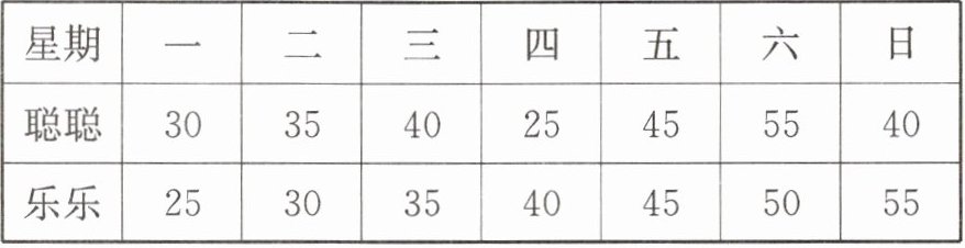 3.下面是聪聪和乐乐上周每天的阅读时间统计表。(单位:分)