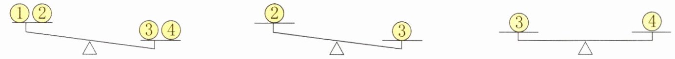 (3)“乒乓球”被称为中国的“国球”。下面4个乒乓球中有一个是次品(质量不同),根据称球情况,可知次品球是(