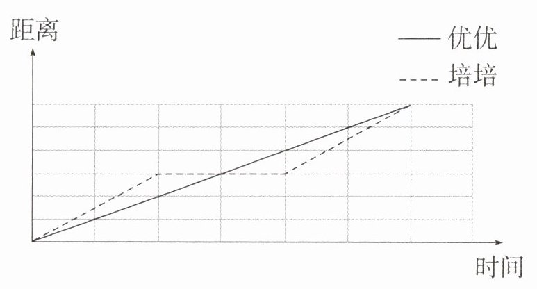 (4)培培和优优进行跑步比赛,她们从同一地点同时出发,培培和优优跑的距离和时间的关系如右图所示。下列说法中,正确的是(