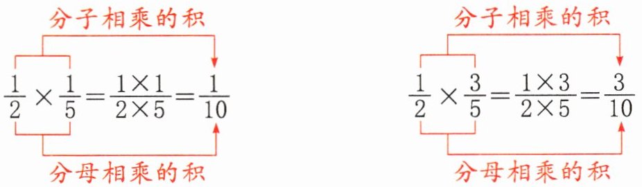 发现:分数乘分数,用分子相乘的积作分子,用分母相乘的积作分母。
