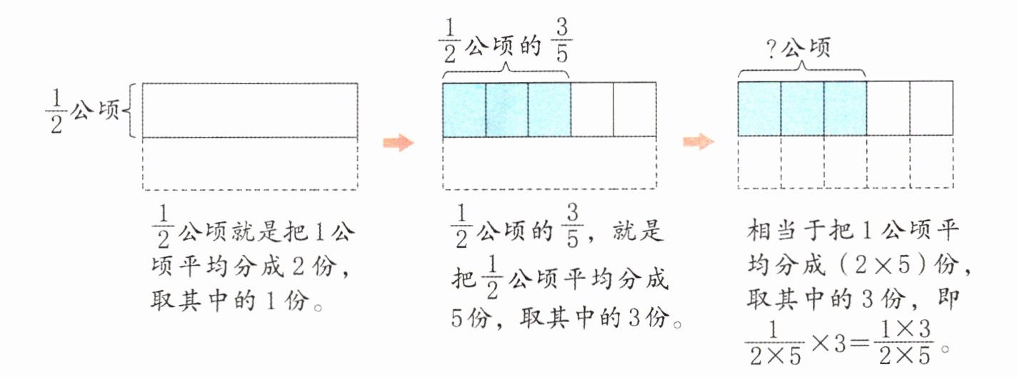 例题: 李伯伯家有一块$\frac{1}{2}$公顷的地。这块地的$\frac{1}{5}$种土豆,$\frac{3}{5}$种玉米。