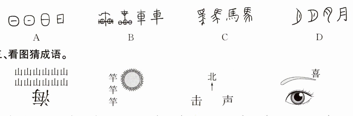 排山倒海 日上三竿 声东击西 喜上眉梢