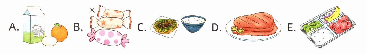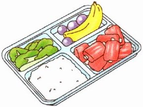 Hi, I'm Nancy. This is my healthy plate. I often have some 1.____(rice/noodles) and some 2.____(chicken/meat) for lunch. I have some green 3.____(vegetables/soup) too. I like fruit. I have some 4.____(grapes/apples) and a banana after lunch.