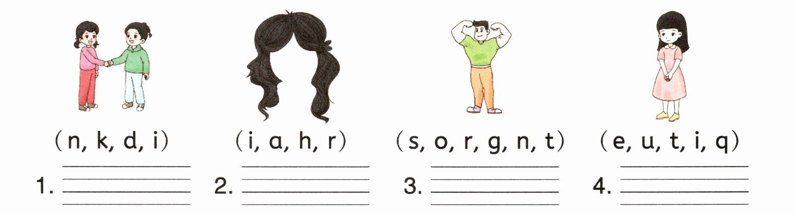 二、根据图片和字母提示,将单词正确地写在四线三格内。