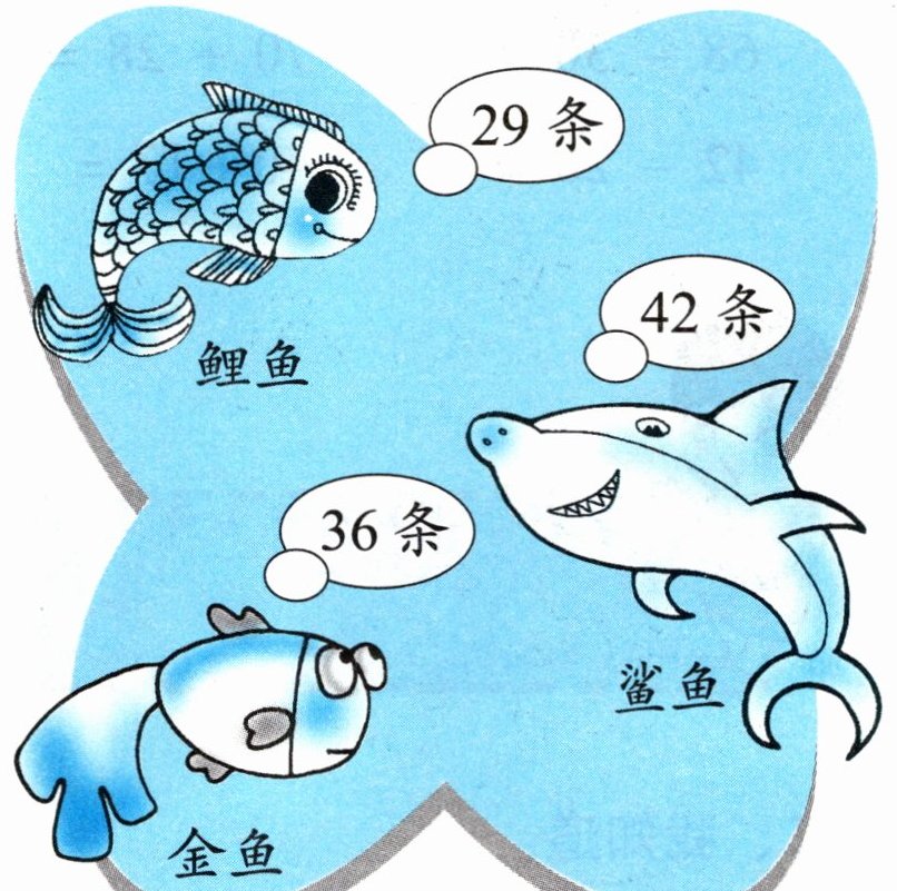 示例:鲤鱼比鲨鱼少多少条?