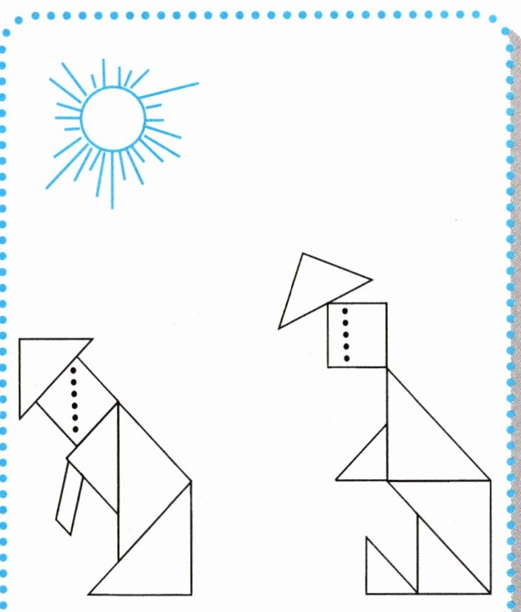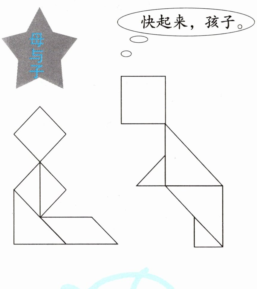 请用七巧板拼出长方形、正方形和三角形。(告诉妈妈你用到了哪几种图形)