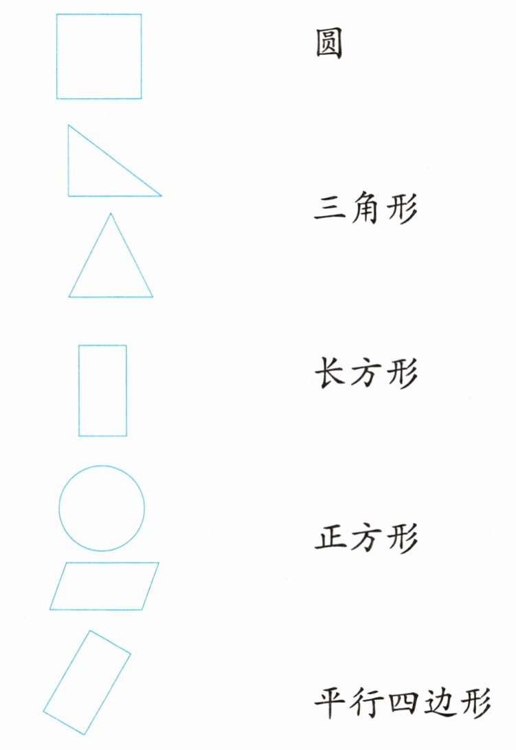 请根据题目要求,用彩笔给图形中相应的形状涂上对应的颜色: