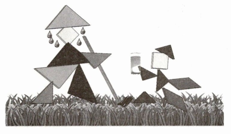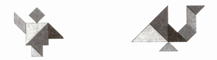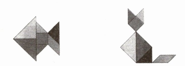 一、你能用七巧板拼出长方形、正方形、三角形及平行四边形吗?动手拼一拼吧。
