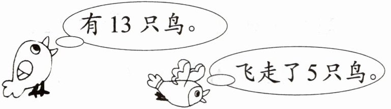 解:已知原来有$13$只鸟,飞走了$5$只,求剩下的鸟的数量,用减法计算,可列式为$13 - 5$。