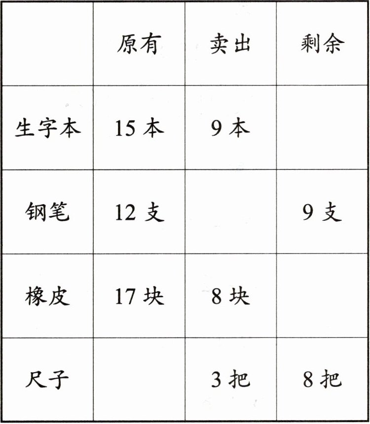 二、开心文具店某天销售情况如下,请将表格补充完整。