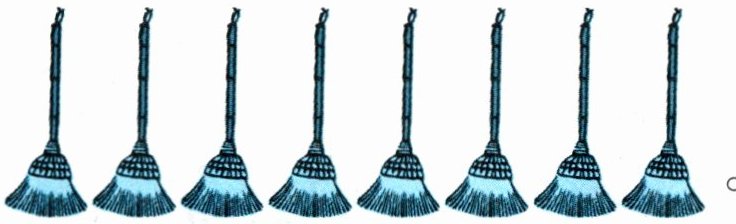 )把扫帚。如果再买来6把扫帚,应该怎样分?