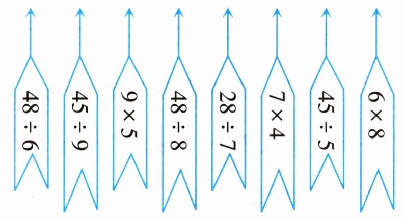 【答案】:“六八四十八”连$48÷6$、$48÷8$、$6×8$;“四七二十八”连$28÷7$、$7×4$;“五九四十五”连$45÷9$、$9×5$、$45÷5$。