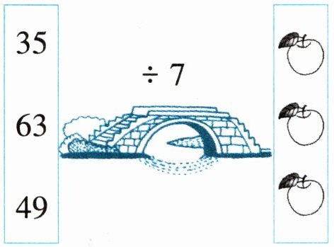 根据乘法口诀“五七三十五”,可得$35÷7 = 5$;根据乘法口诀“七九六十三”,可得$63÷7 = 9$;根据乘法口诀“七七四十九”,可得$49÷7 = 7$。
