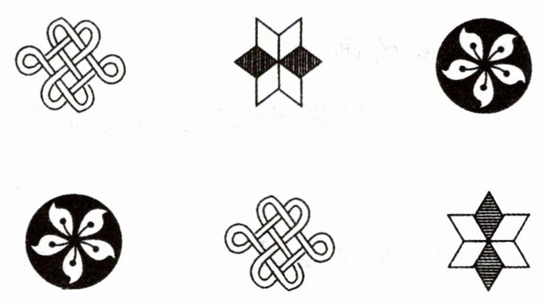 将第一行第一个图形与第二行第二个图形相连,第一行第二个图形与第二行第三个图形相连,第一行第三个图形与第二行第一个图形相连。