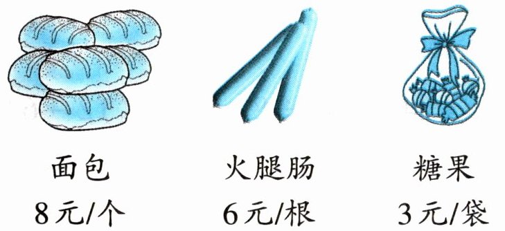 5. 一根火腿肠的价格是一袋糖果价格的几倍?