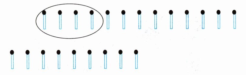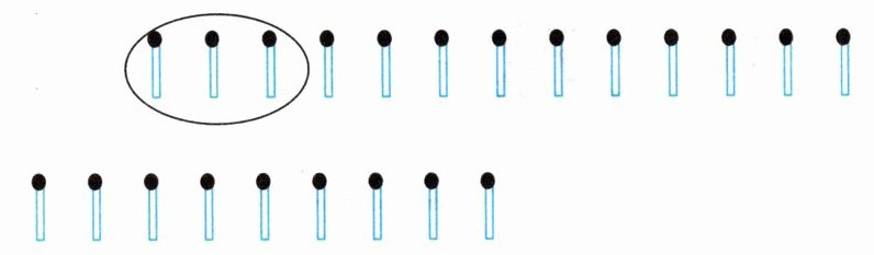 先画$2$组,每组$6$个圆圈(表示$2$筐,每筐$6$个足球),再画$5$个单独的圆圈(表示剩余$5$个足球)。