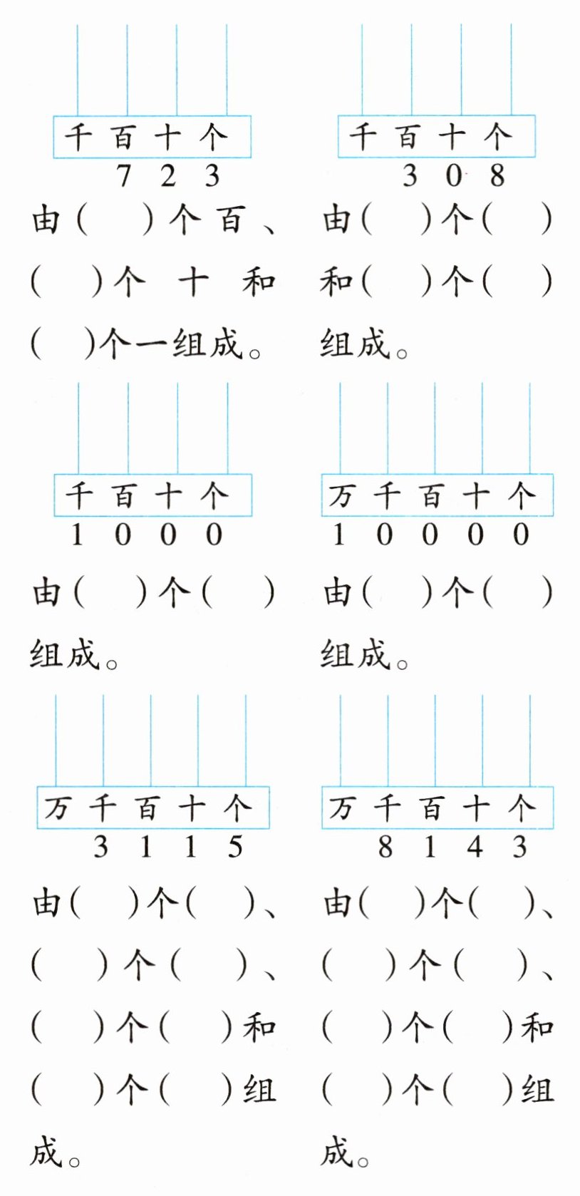 (2)从九千九百九十一,一个一个地数,数到一万。