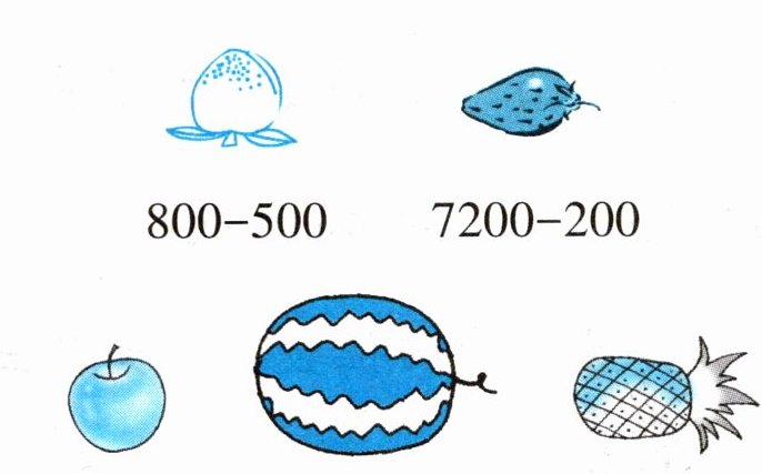 请你按水果下面算式的得数大小摆水果。