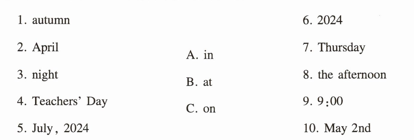 一、将下列时间和它们的介词朋友连起来吧。