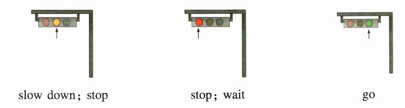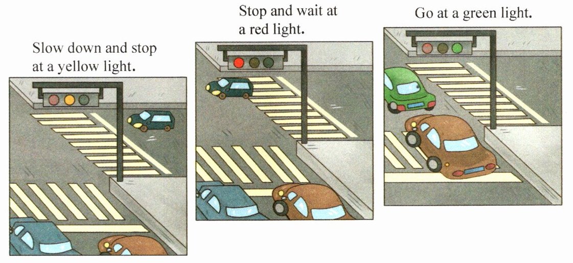 二、1. slow down; stop 2. stop; wait 3. green