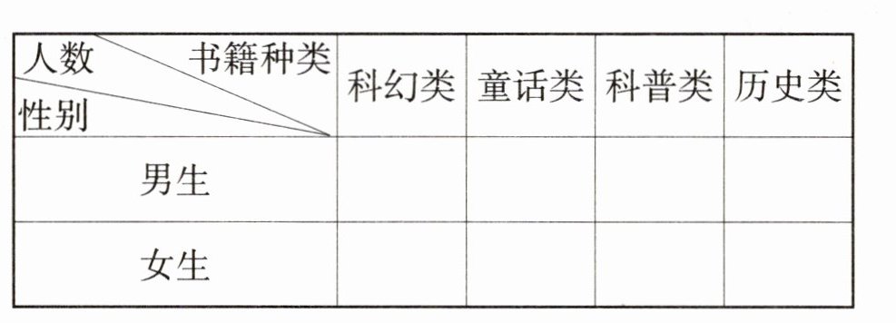 一、下面是某校三年级学生最喜欢的书籍统计表。(每人只选一类)