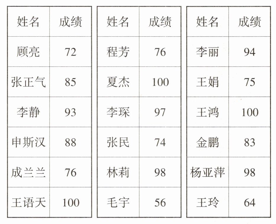 2. 最高分是( )分,共有( )人,他们分别是( )。