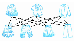 4. 姐姐有3条裤子、5件毛衣,她一共可以有(