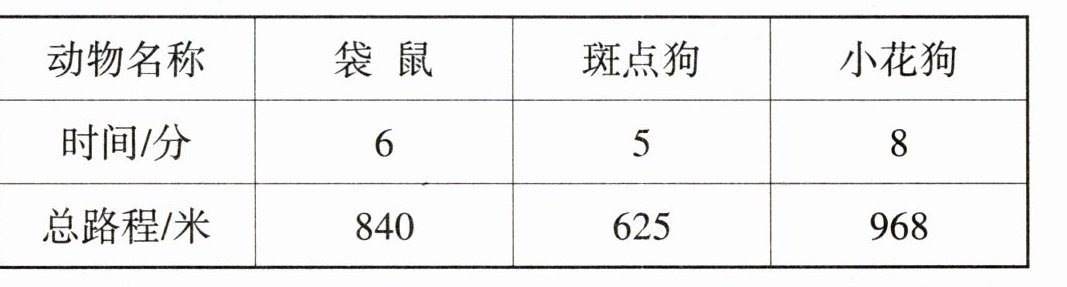 四、在森林运动会期间,三个小动物的跑步成绩如下表所示: