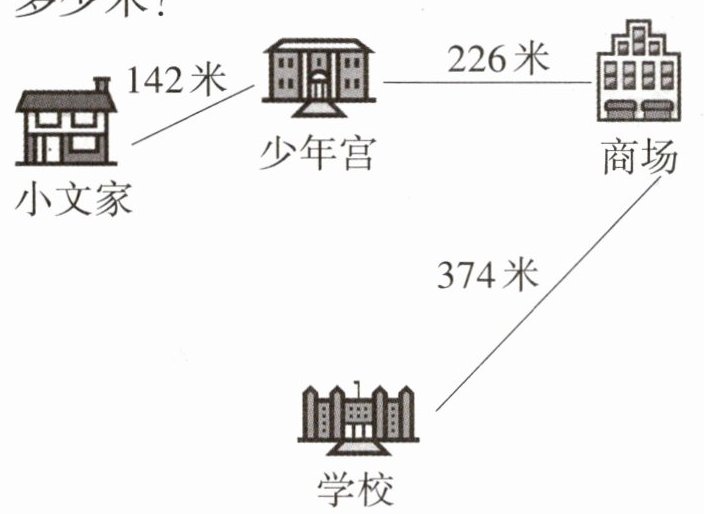 本2. 小文从家到少年宫,再到商场,最后到学校,一共要走多少米?