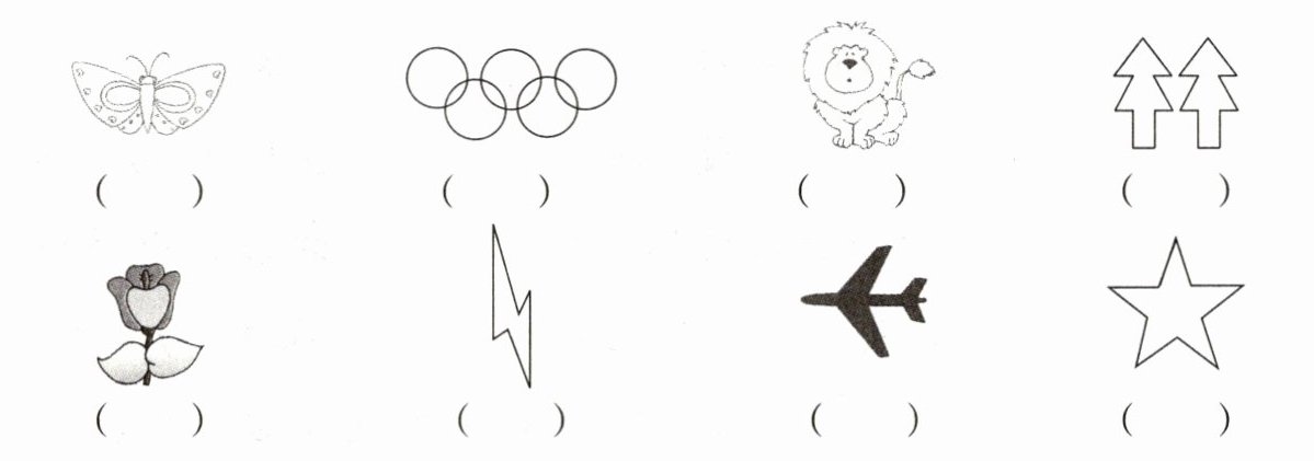 一、下列图形哪些是轴对称图形?在其对应的括号里画“√”,并画出它的对称轴。