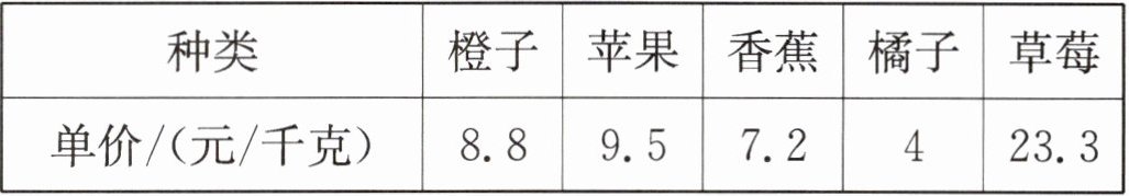 (2)五(1)班举办晚会,李老师为同学们买了苹果、香蕉和草莓各 2.8 千克。李老师一共花了多少钱?(9★)