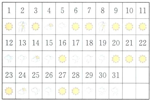 根据上面记录的天气情况,统计一下每种天气的天数吧!