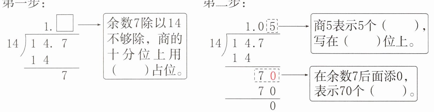注意:在商个位的右下角点上小数点。