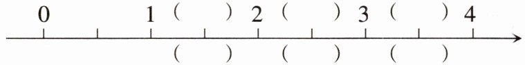 五、在直线上面的括号里填上合适的假分数,在直线下面的括号里填上合适的带分数。