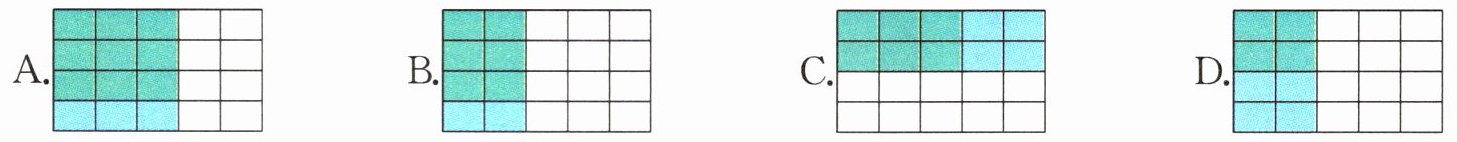 1.下面可以表示$\frac {2}{5}×\frac {3}{4}$的是(