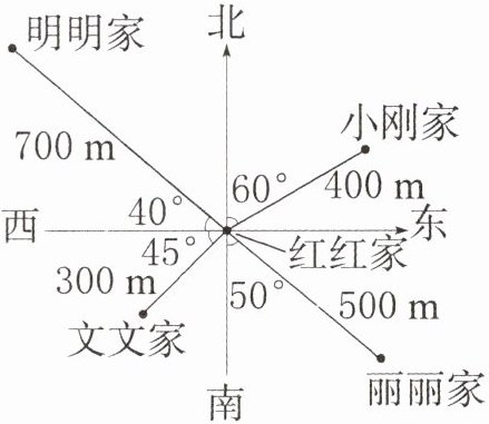 (1) 小刚家在红红家北偏东$60^{\circ }$的方向上,距离红红家(